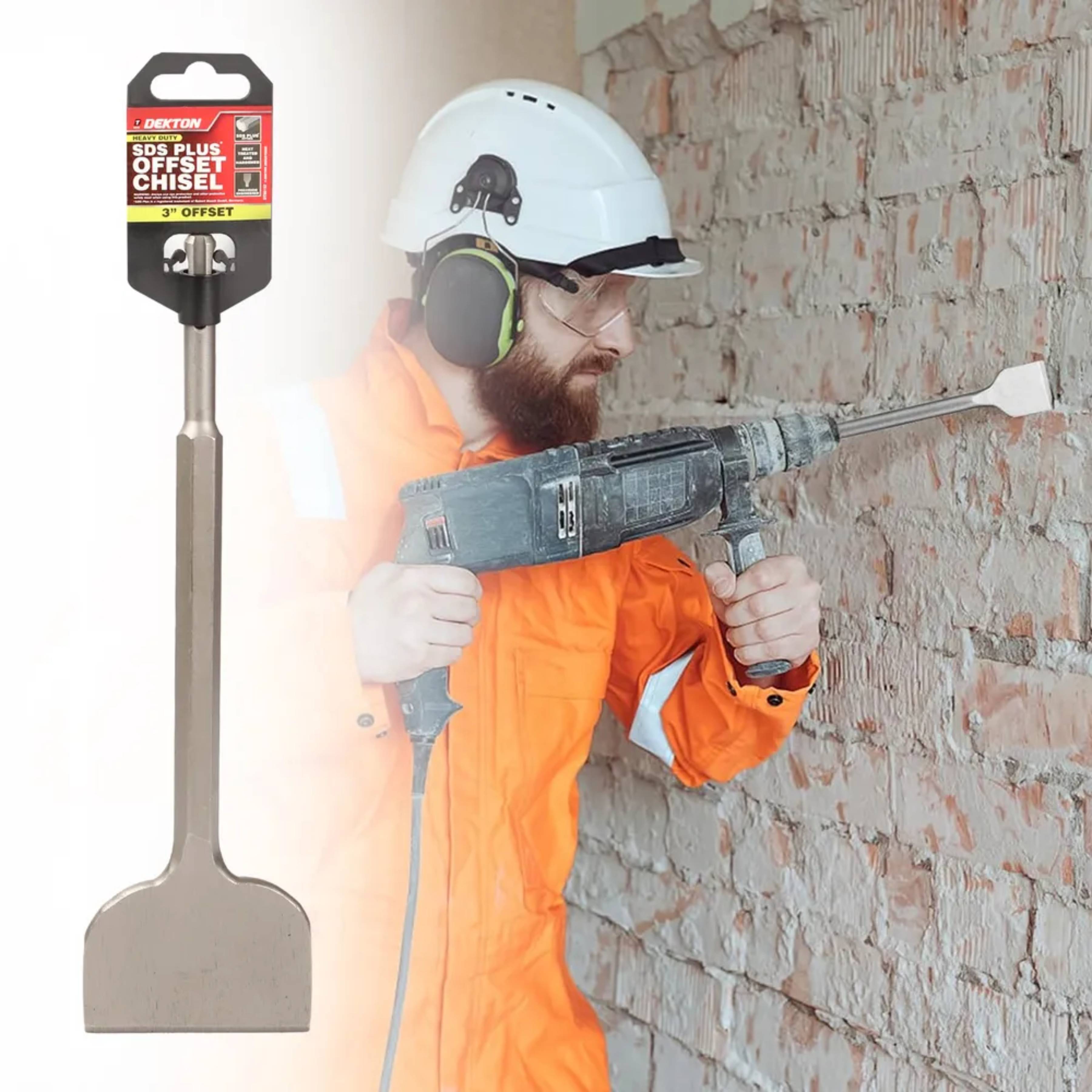 The DEKTON SDS Plus Offset Chisel 3" is built for heavy-duty demolition and surface removal tasks. Ideal for professionals and serious DIYers, it delivers power, precision, and durability in every strike.