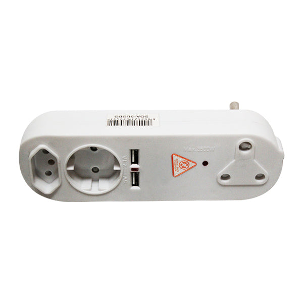 5 Way 2 USB Surge Adapter (ES5W2USBMPS) Specifications:- 1 x flat + 1 x schuko 16A + 2 x USB 2.1A- 1 x 3-Pin 16A + surge adapter- For residential use only   What's in the box - 1 x 5 Way 2 USB Surge Adapter (ES5W2USBMPS)