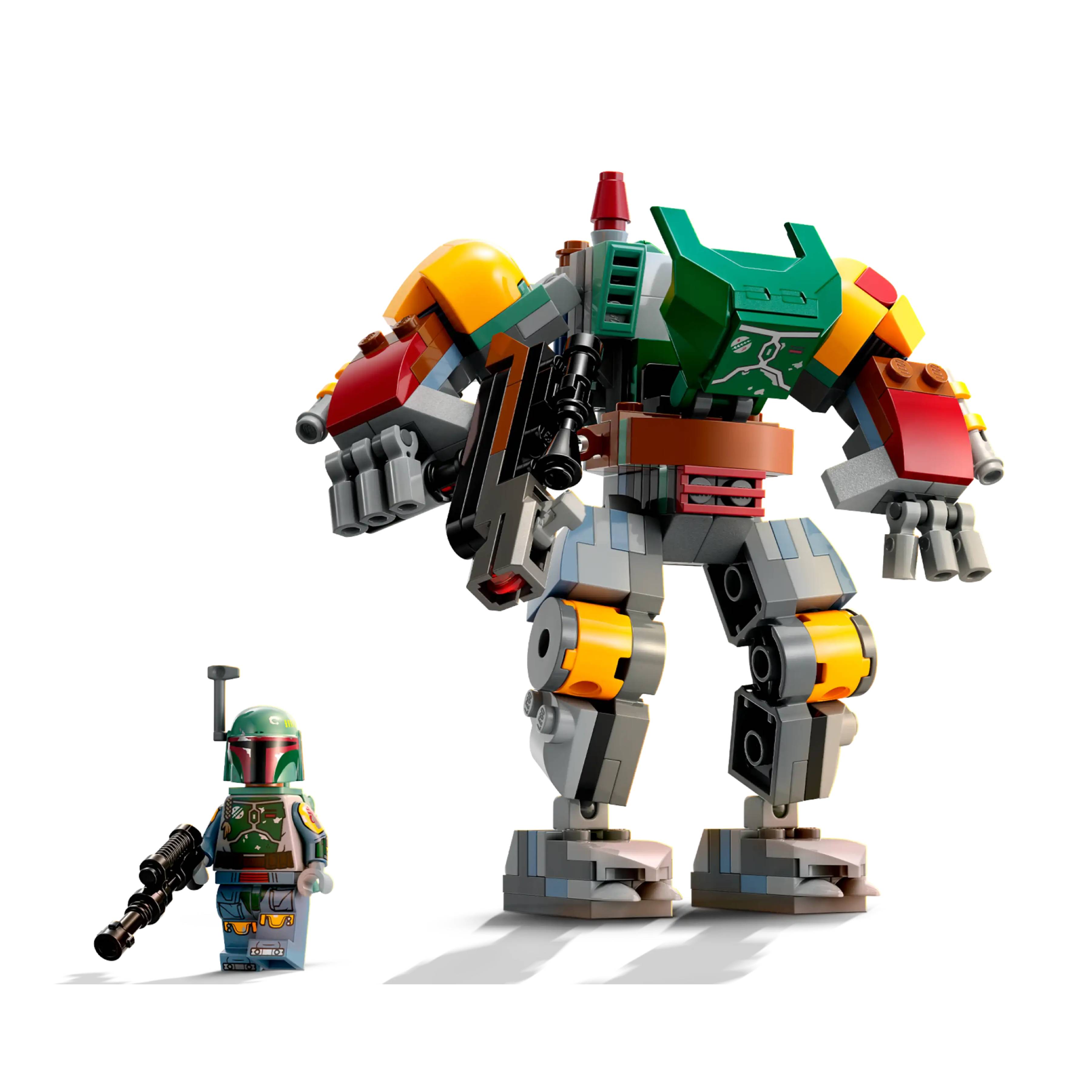 • A Boba Fett LEGO minifigure – Boba Fett comes with a blaster rifle and jetpack accessory element. The blaster rifle can be clipped to the mech, and Boba can wear the jetpack in the cockpit