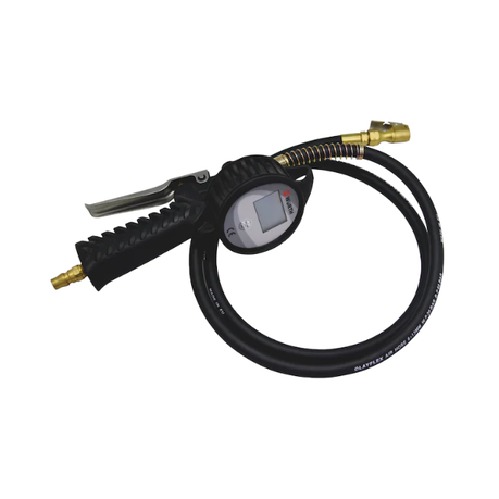 Digital tyre inflator with easy-to-read LCD display Features:- 4 unit settings (BAR, PSI, KPA, KGF)- 1.5 m hose- Comfortable rubber grip- Clip-on air chuck- Grip mounted inflation/deflation lever- Back light feature- Measuring range: 0-12 BAR (0-175 PSI)- Reading accuracy is 0.01 BAR (0.1 PSI)- Max. inlet pressure is 15 BAR...
